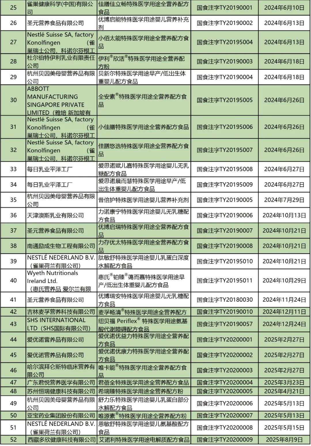 截至8月,已有52款特医食品通过注册,其中23款为国产特医食品,其余29款为进口特医食品。